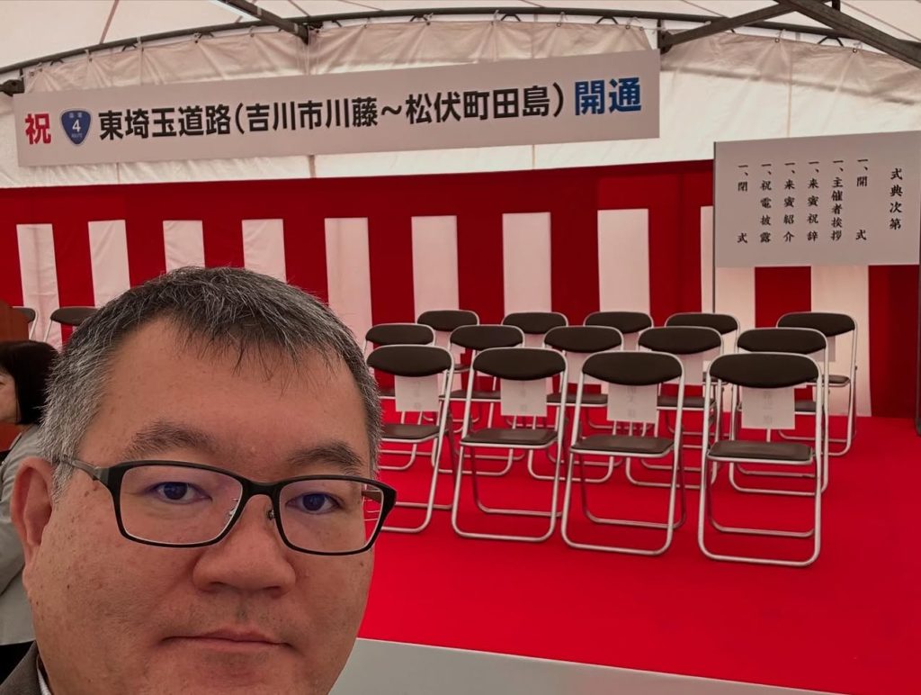皆様のご協力によって実現したこの道路が、地域の安心・安全、そして未来のまちづくりを支える大きな力となります。引き続き東埼玉道路の全線開通のため県政の場から全力で取り組んでまいります。