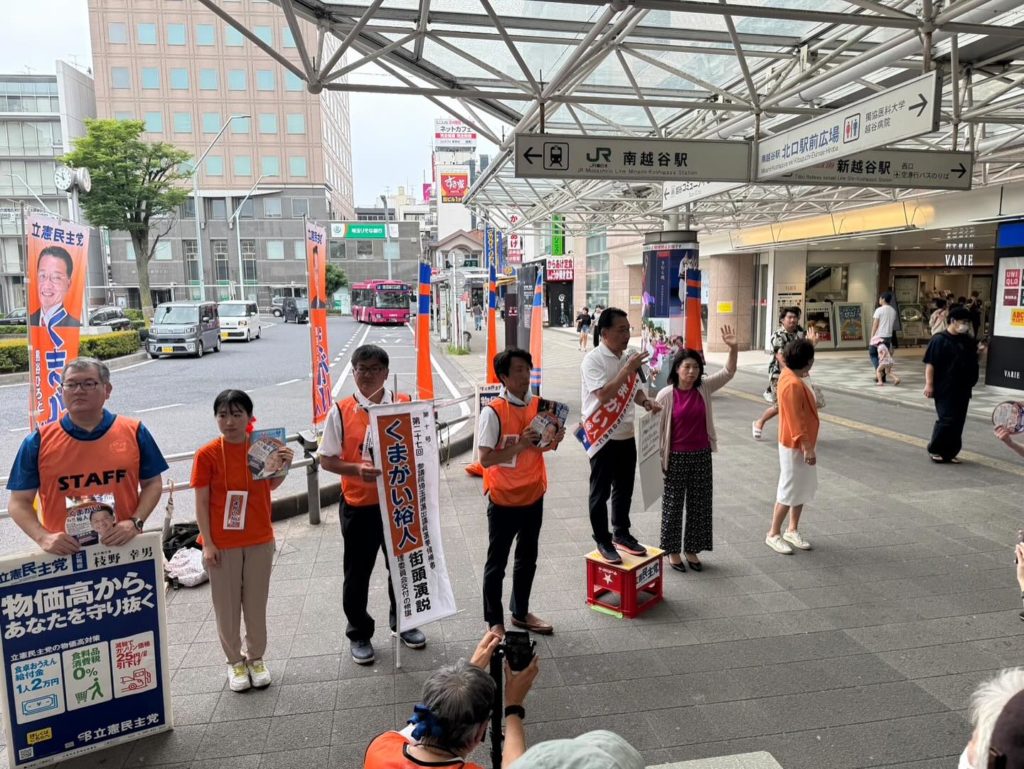 本日、参議院議員選挙において、立憲民主党の熊谷裕人(くまがいひろと)候補が新越谷駅にて街頭演説を行いました。