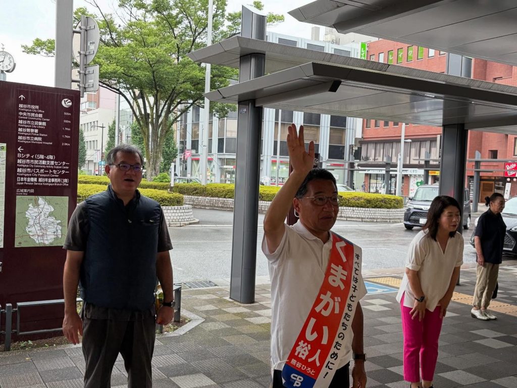 本日、越谷駅にて 参議院議員候補 の 熊谷裕人 さんとともに朝のご挨拶活動を行いました。