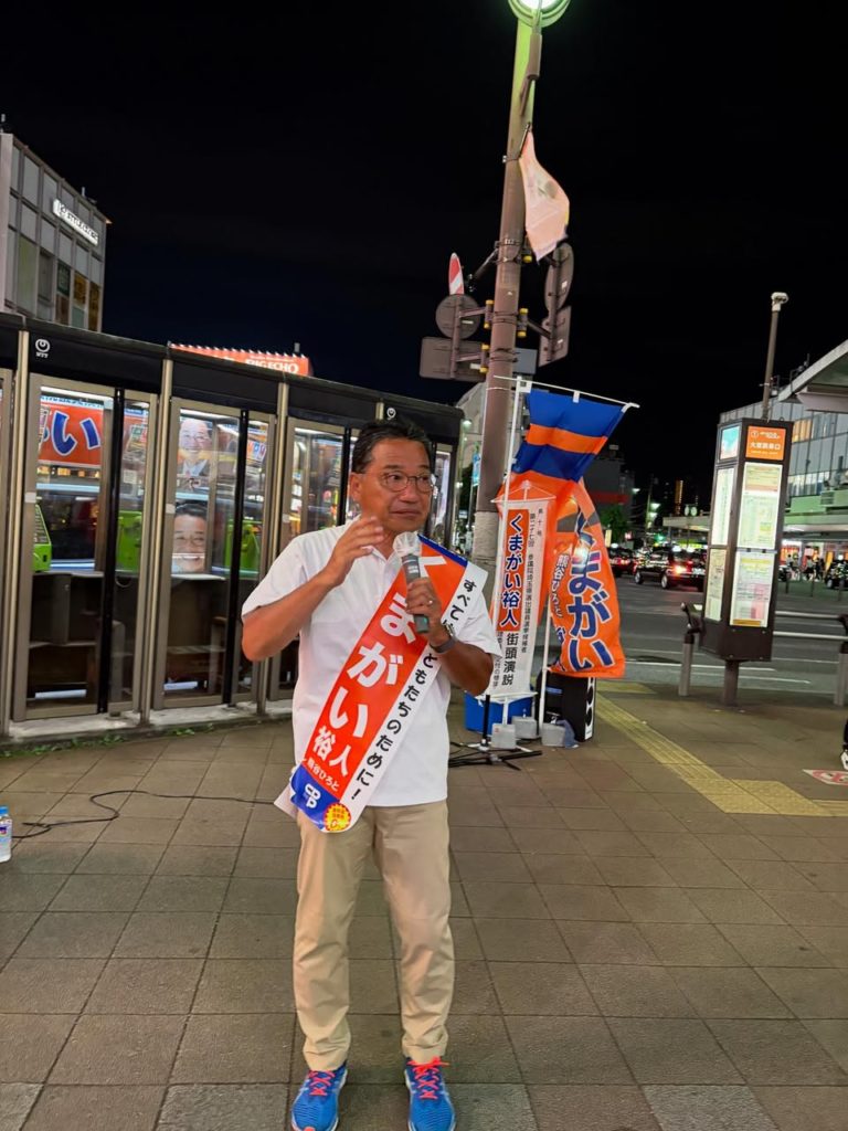 参議院選挙、最終日(7月19日)。埼玉県選挙区、立憲民主党公認くまがい裕人候補が大宮駅東口にて街頭演説を行っています