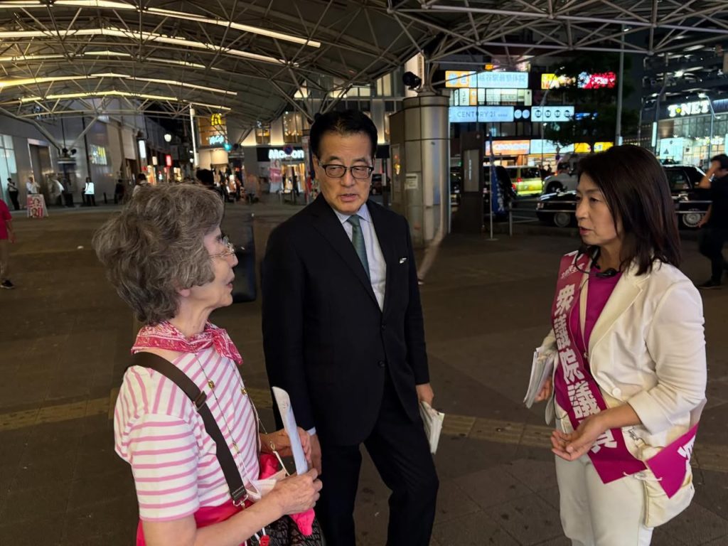 本日夕方、新越谷駅にて岡田克也衆議院議員、竹内千春衆議院議員、そして埼玉3区の地方議員の皆さんとともに街頭演説を行いました。