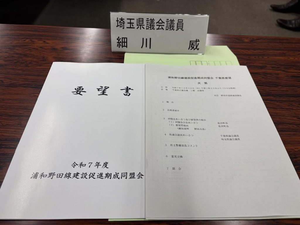 10月30日、浦和野田線建設促進期成同盟会による千葉県庁への要望活動に同行しました。東西を貫き交通の要となる「浦和野田線」は、越谷市をはじめ地域の皆様の交通利便性・安全・産業活力に直結する重要なインフラです。