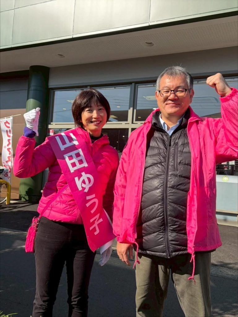 本日、県議補選に挑む山田ゆうこ候補の朝の北越谷駅と街頭演説に応援へ行きました。