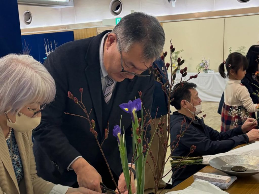素晴らしい作品が並び、華道の体験もさせていただきました。